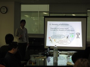 見学の次は、協調メディア研究室で行っている活動をKMDの皆さんに英語で紹介しました。